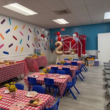 Each specialty package includes open play in our main play area, a themed activity, and time for food/cake. We provide 30 minutes prior for you to set up any decor. We take care of all clean-up.
